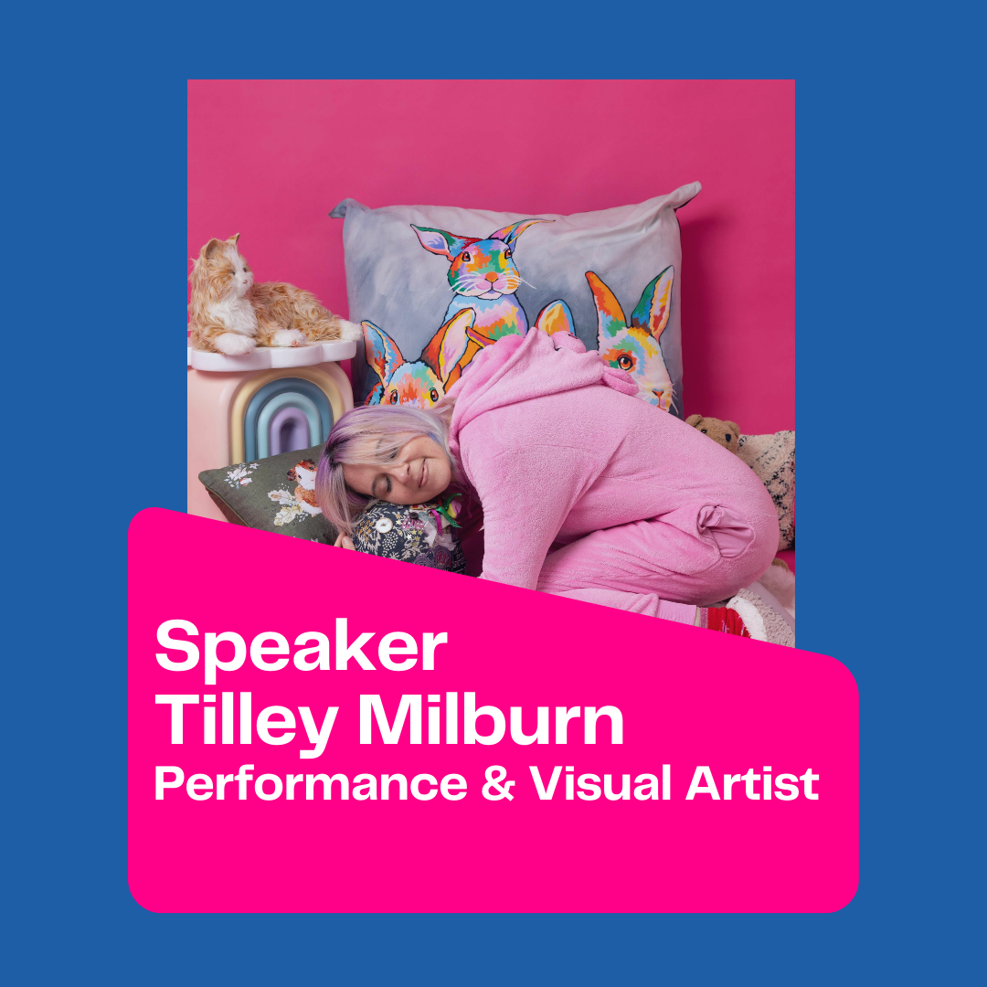 Tilley Milburn is a unique performance and visual artist. Their work incorporates a variety of art forms including acting, directing, singing/songwriting, compering/interviewing, poetry/spoken word, puppetry, design/illustration and comedy/improv. They also facilitate workshops and curate immersive experiences and spaces. They often perform with their best friend, Del, a patchwork piggie.