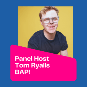 Tom was in the top 10 of the Disability Power 100 in 2024 in the “Performing Arts, Television and radio” category, and is also beginning his time as a 25/26 Clore Fellow. In 2021 he consolidated this experience when he founded BAP! – a company dedicated to nurturing the development and growth of ambitious cultural organisations.