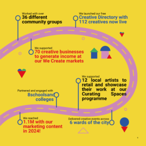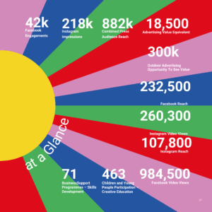 From large-scale public art projects that brought people together, to workshops and development opportunities that helped local talent thrive, the impact of our work has been felt across the city. These moments remind us of the importance of inclusive spaces where creativity is not only celebrated but made accessible to all.